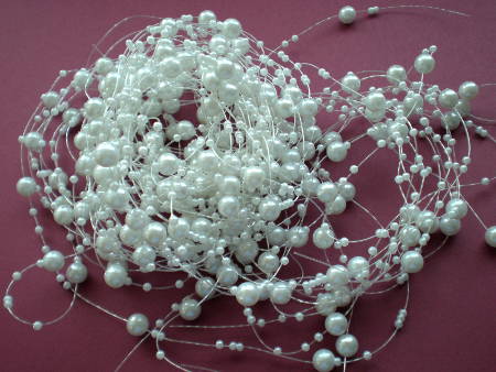 Využití operličkovaného vlasce zejména jako svatební dekorace - na stoly, do květinové vazby a kytic apod.